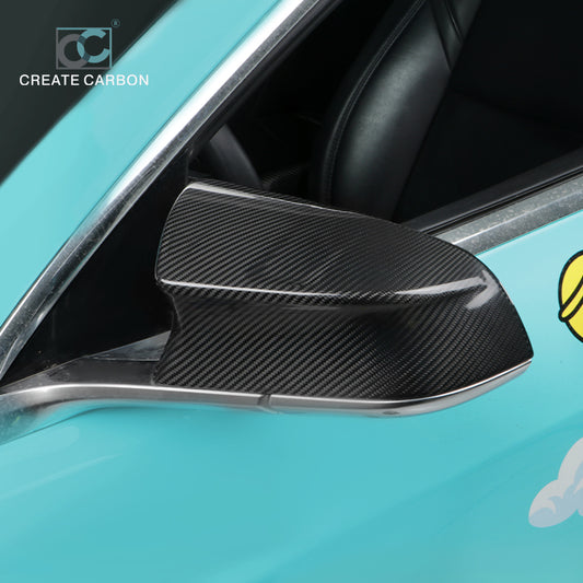 CREATE CARBON Dry Carbon Fiber Horn Style Rear Mirror Cover for Tesla Model 3 & Y - Sleek Exterior Enhancement